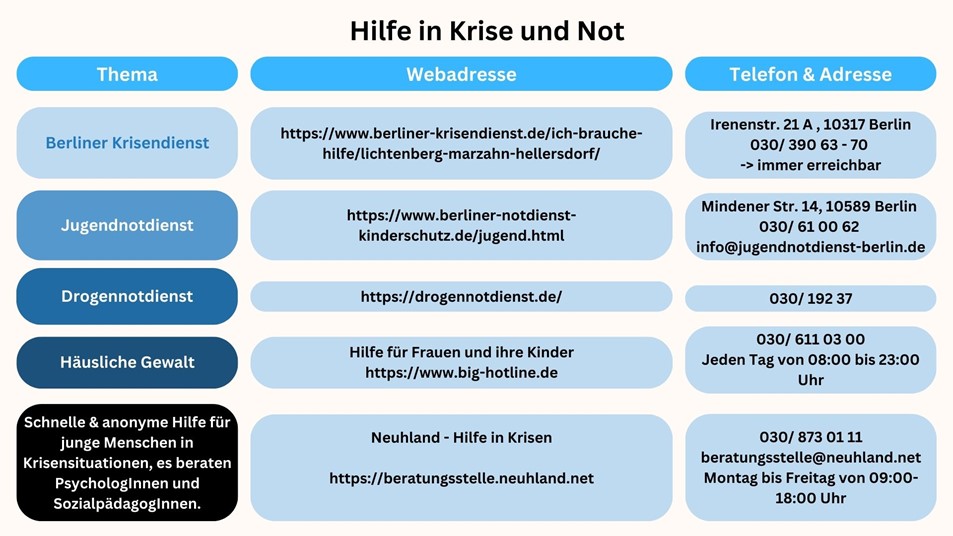 • Krisen und Konfliktsituationen, sowohl schulisch als auch privat/ persönlich